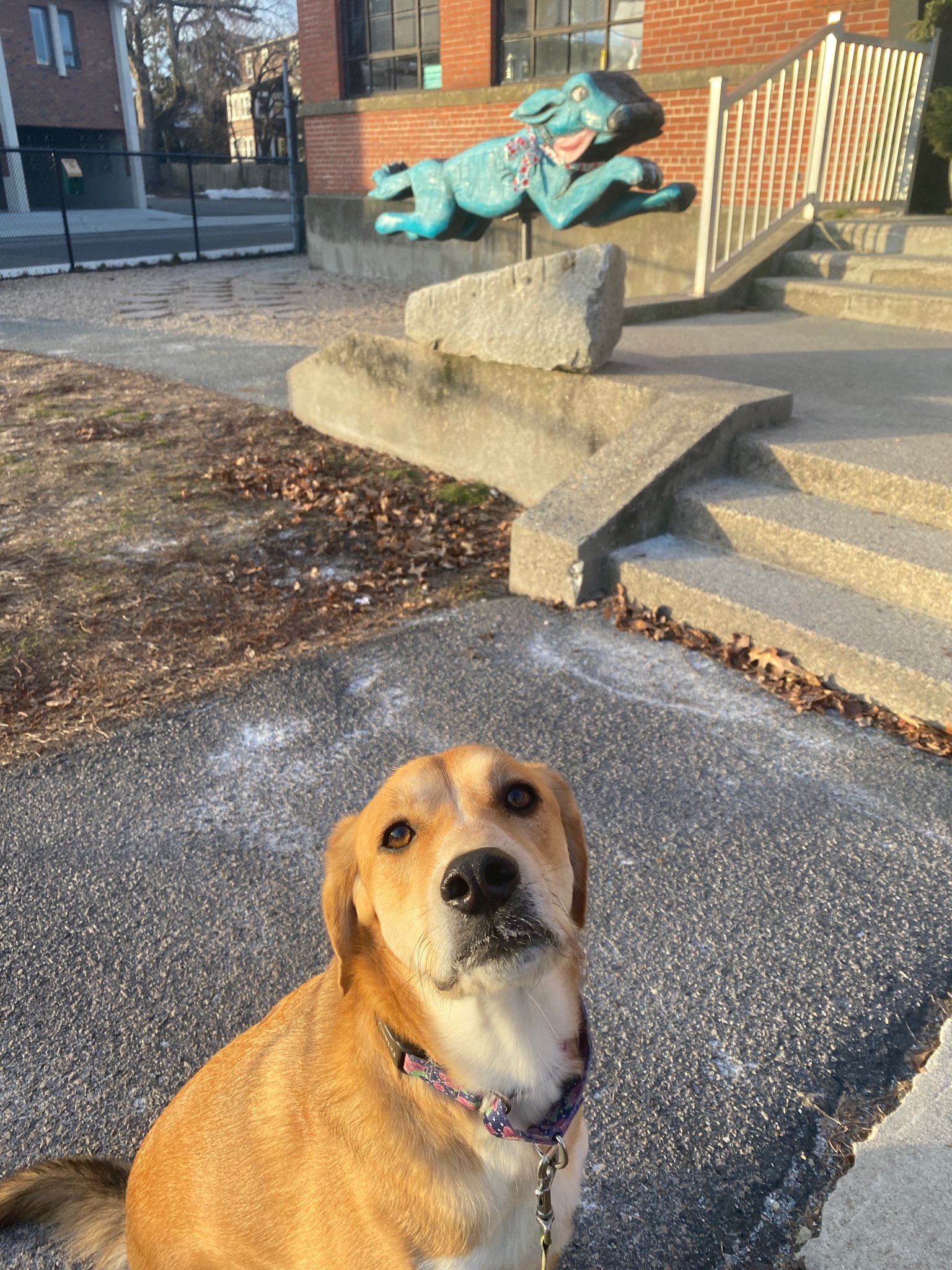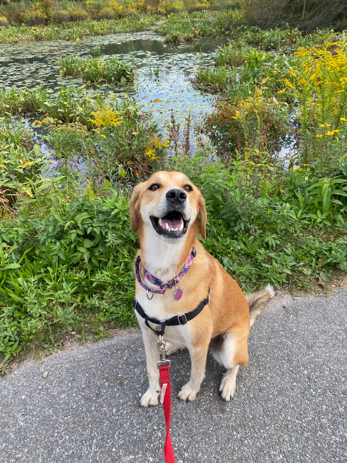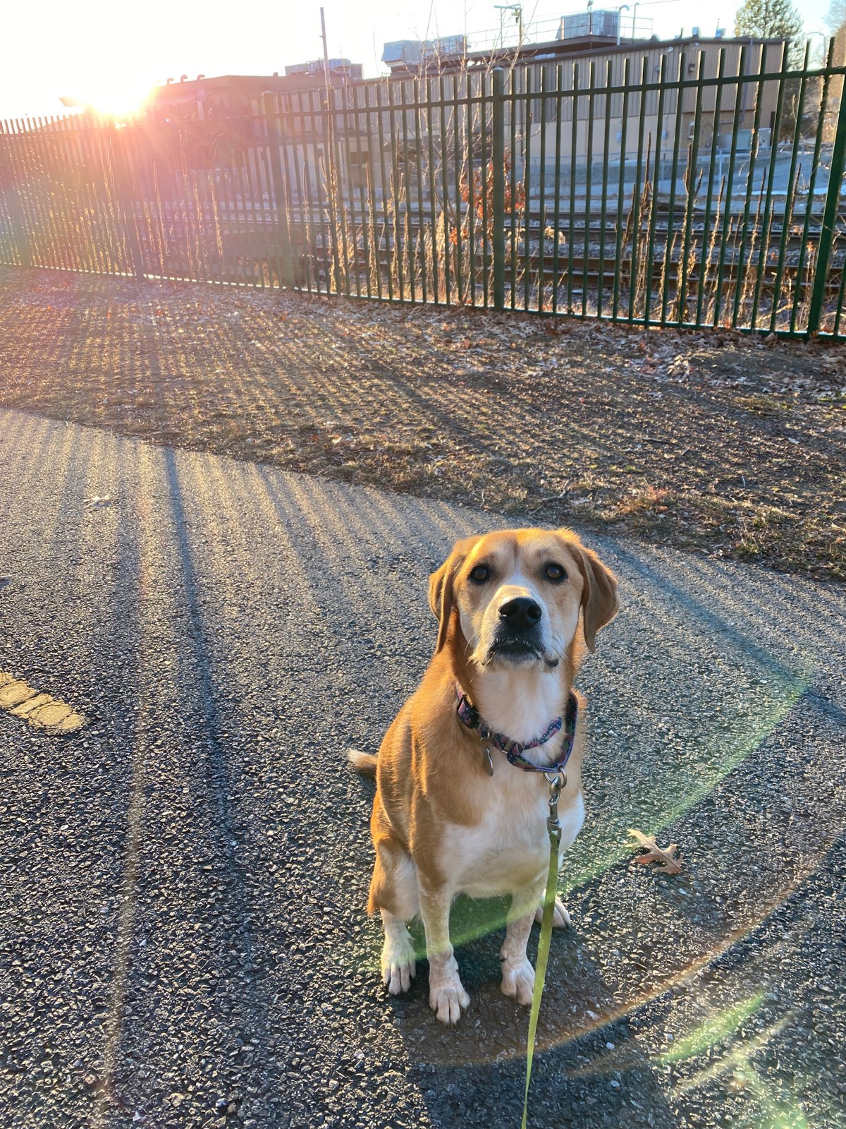 On our way to daycare, Olive runs down the hill I refer to as “Pup Mountain.”