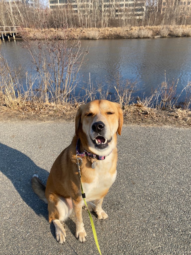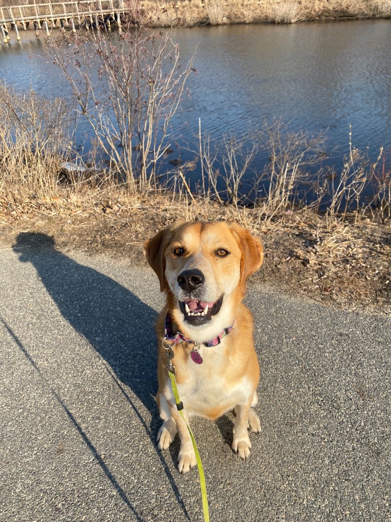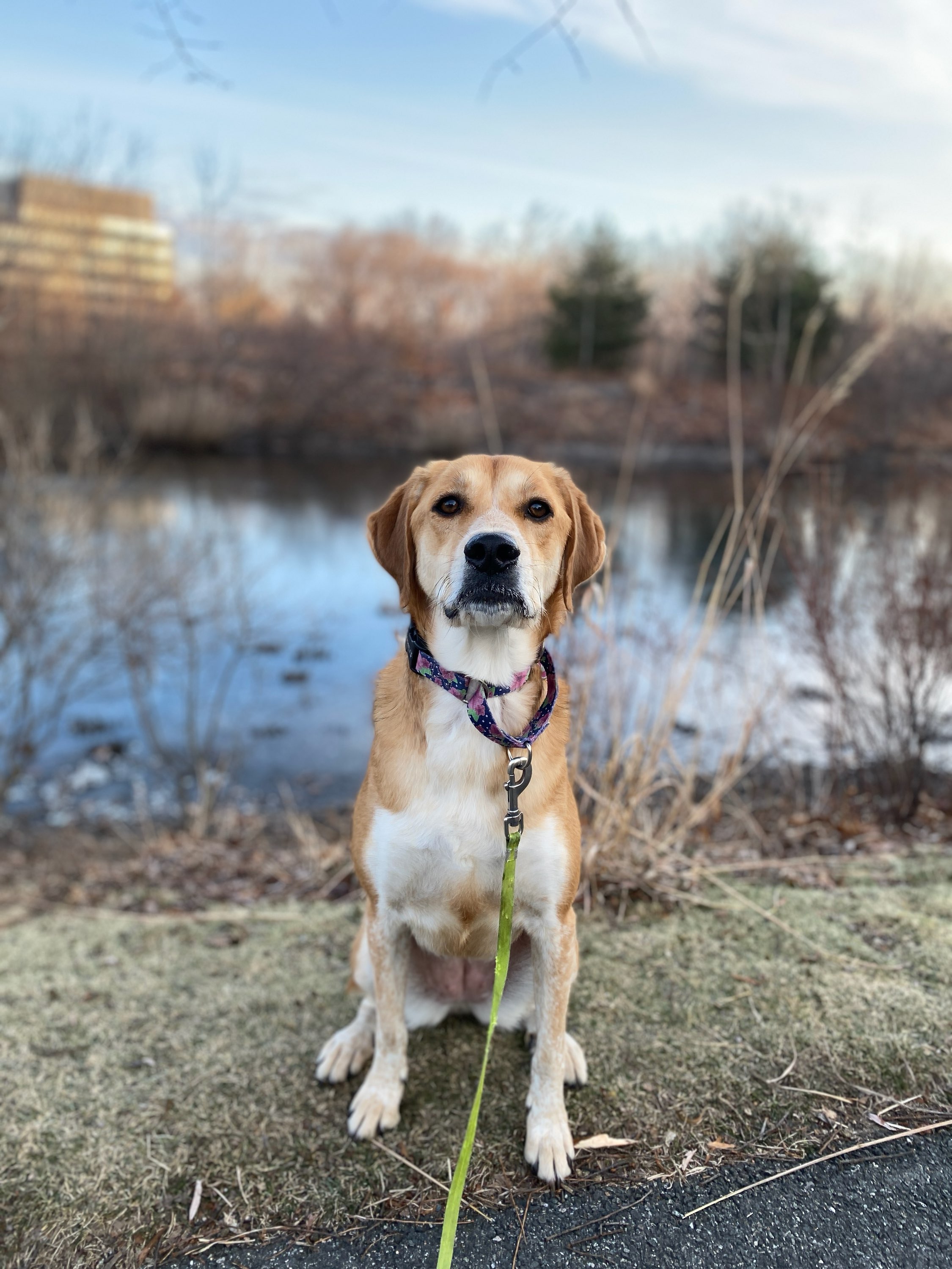 On our way to daycare, Olive runs down the hill I refer to as “Pup Mountain.”