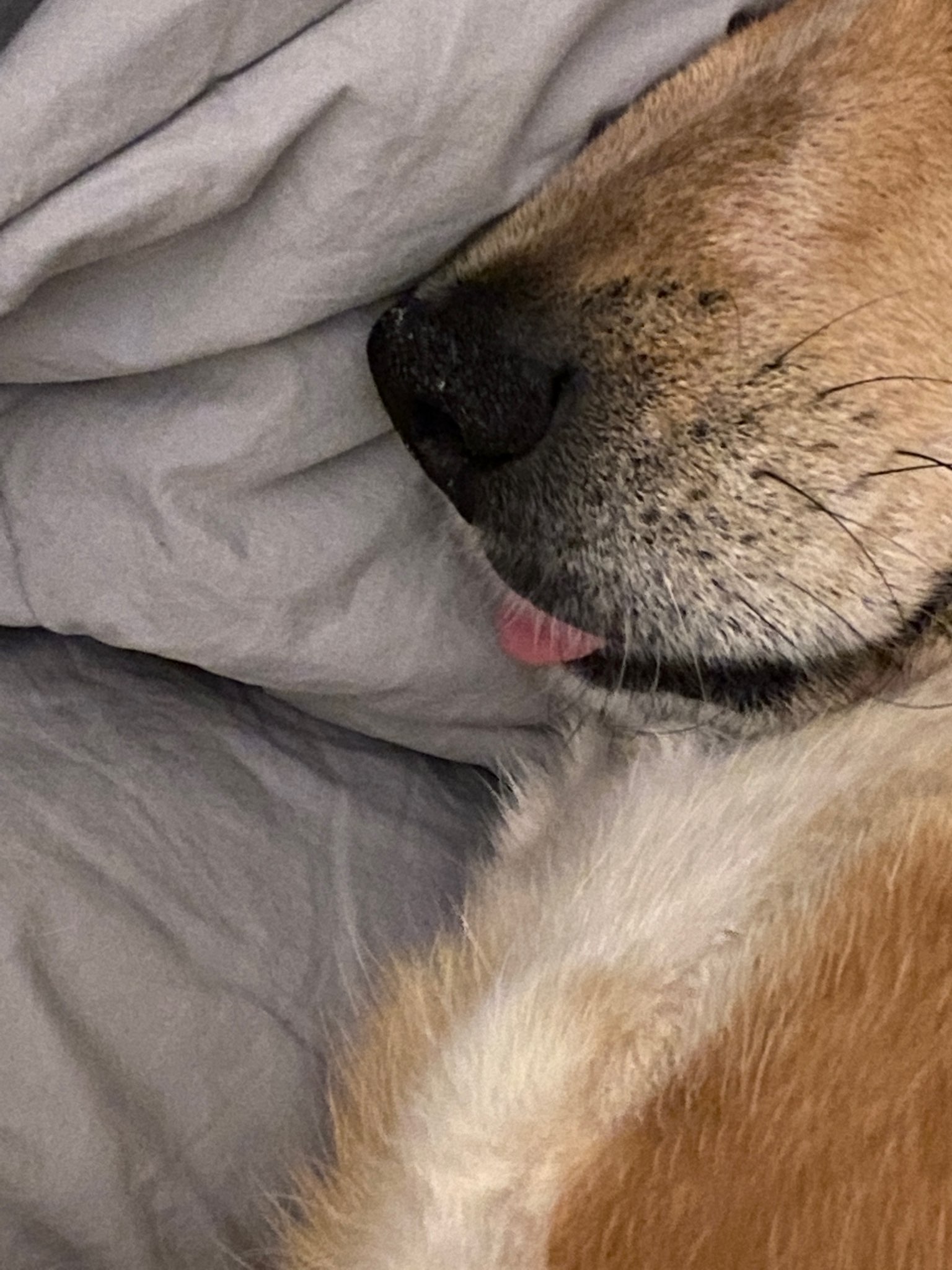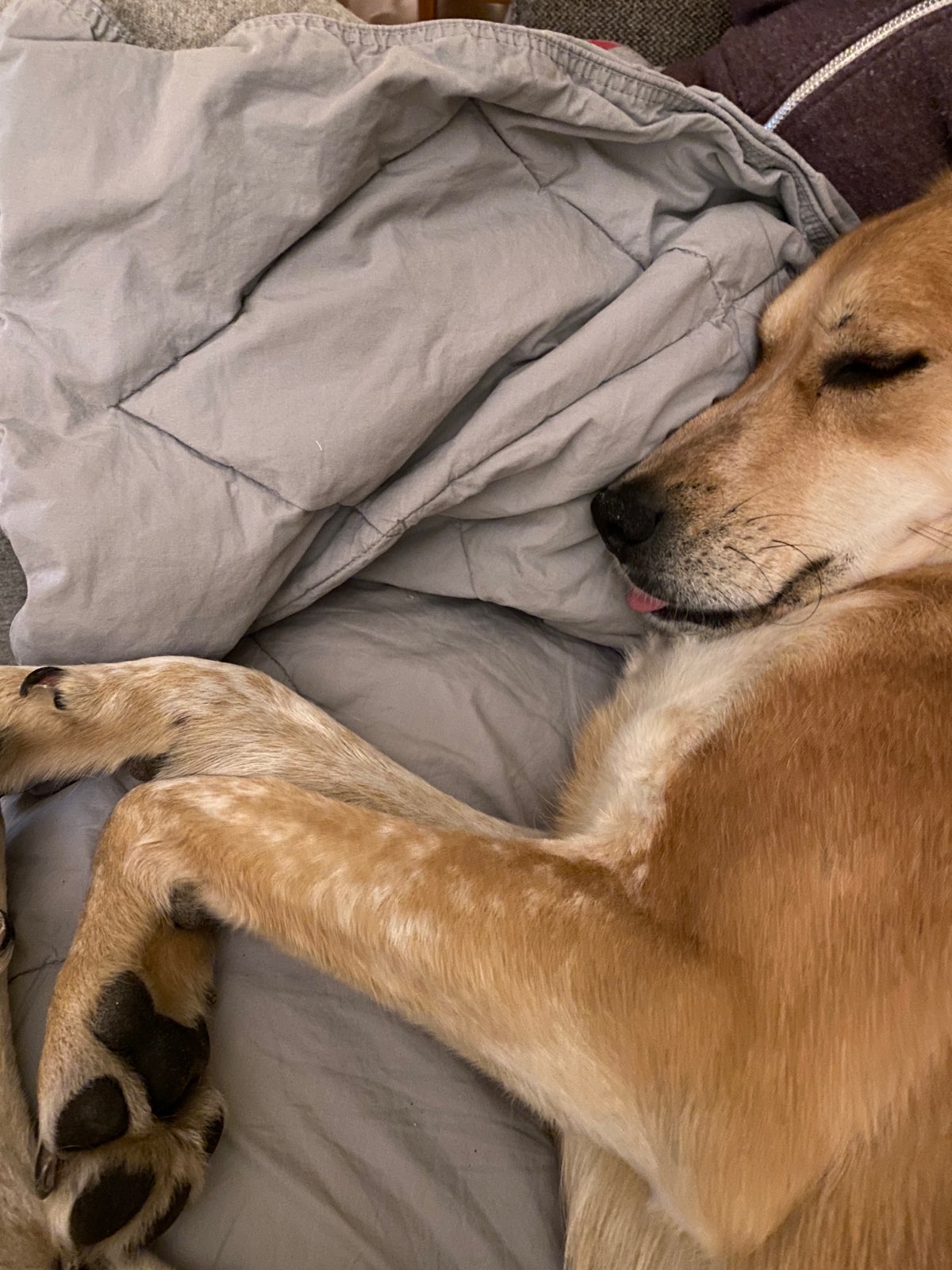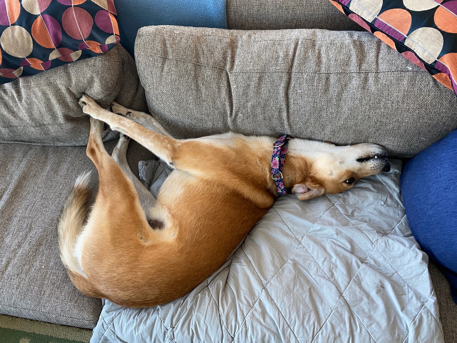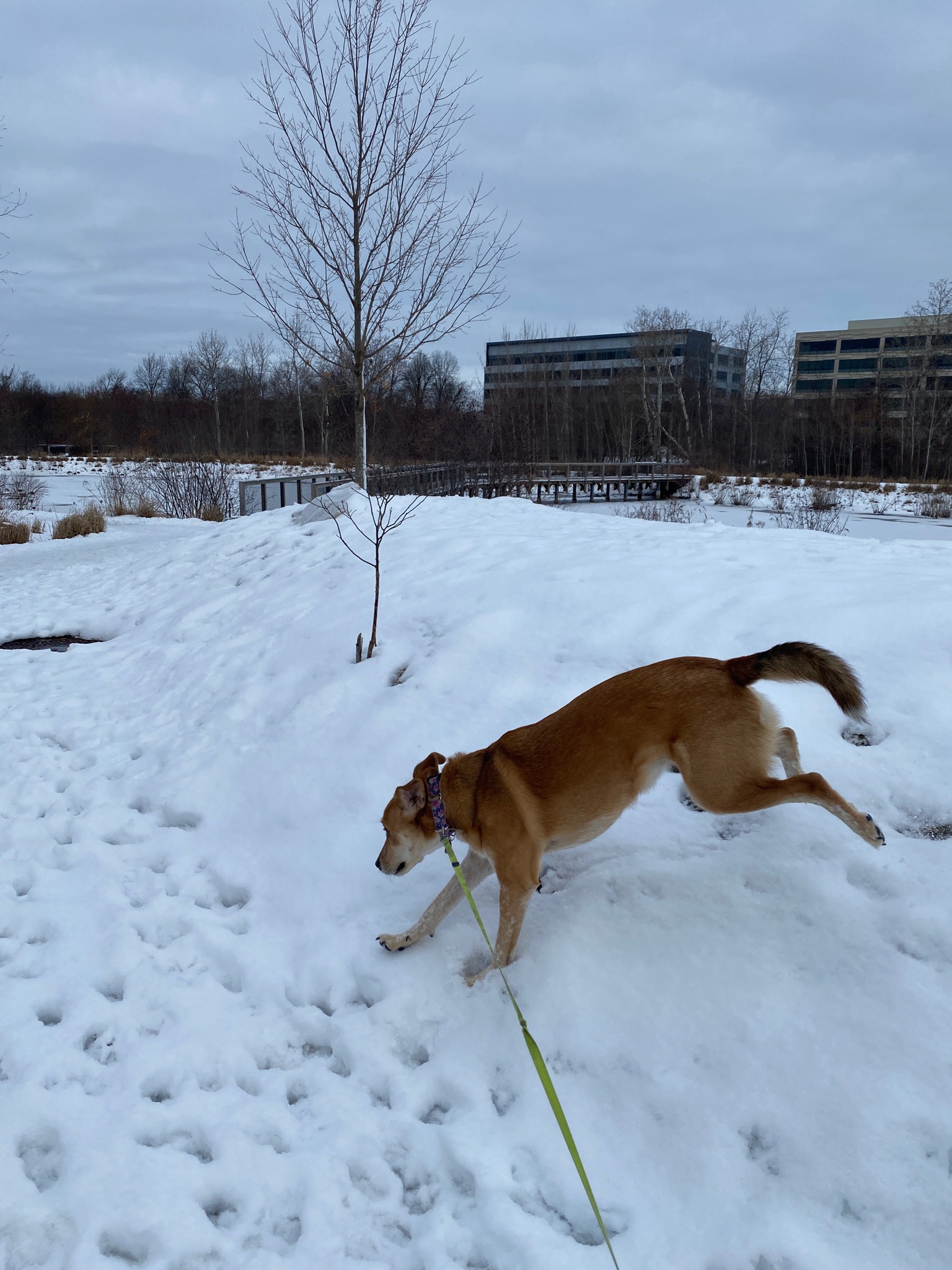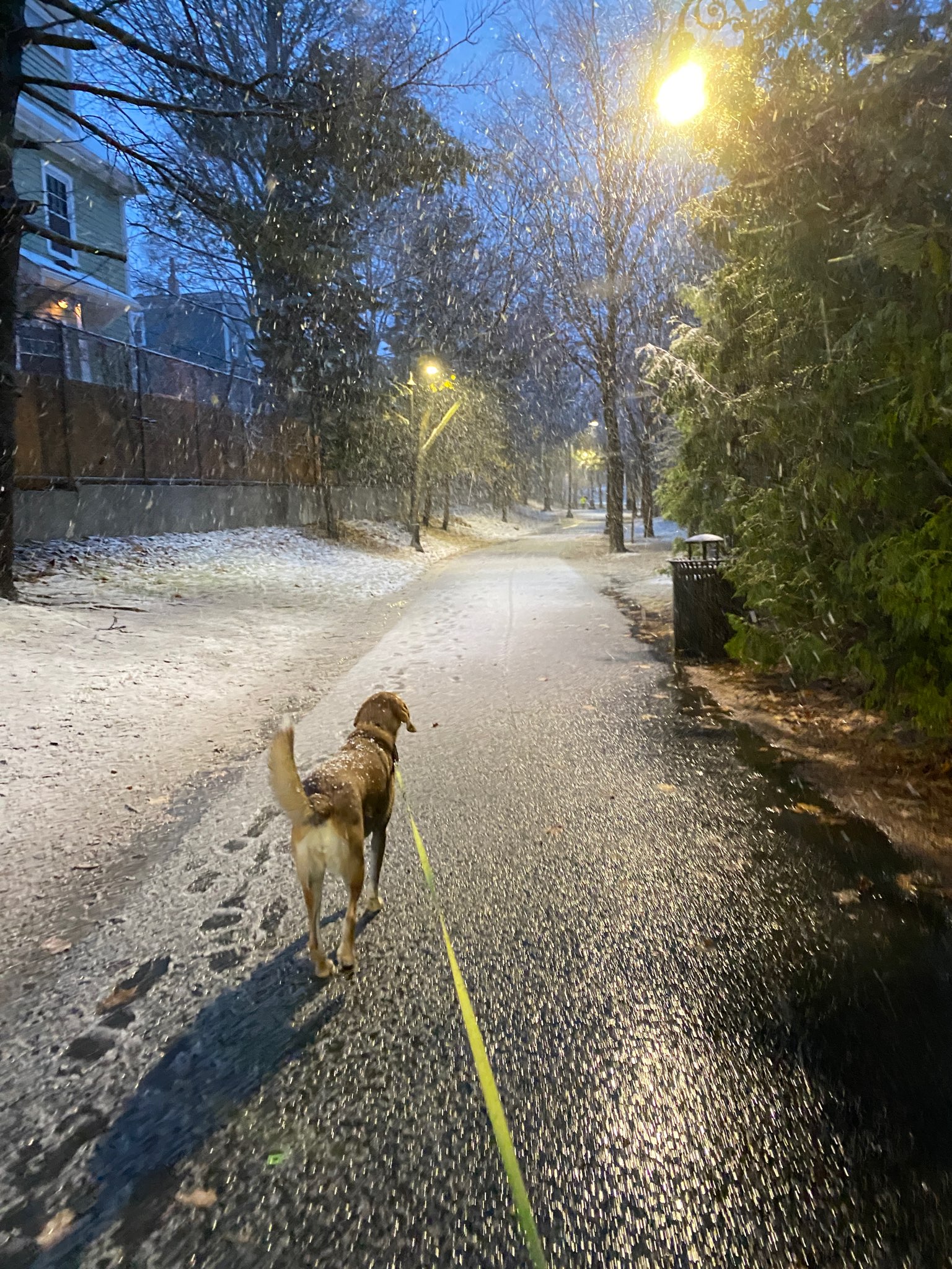 Pup was in her element on our snowy evening walk. But she’s now curled up on the couch where she’s equally in her element.