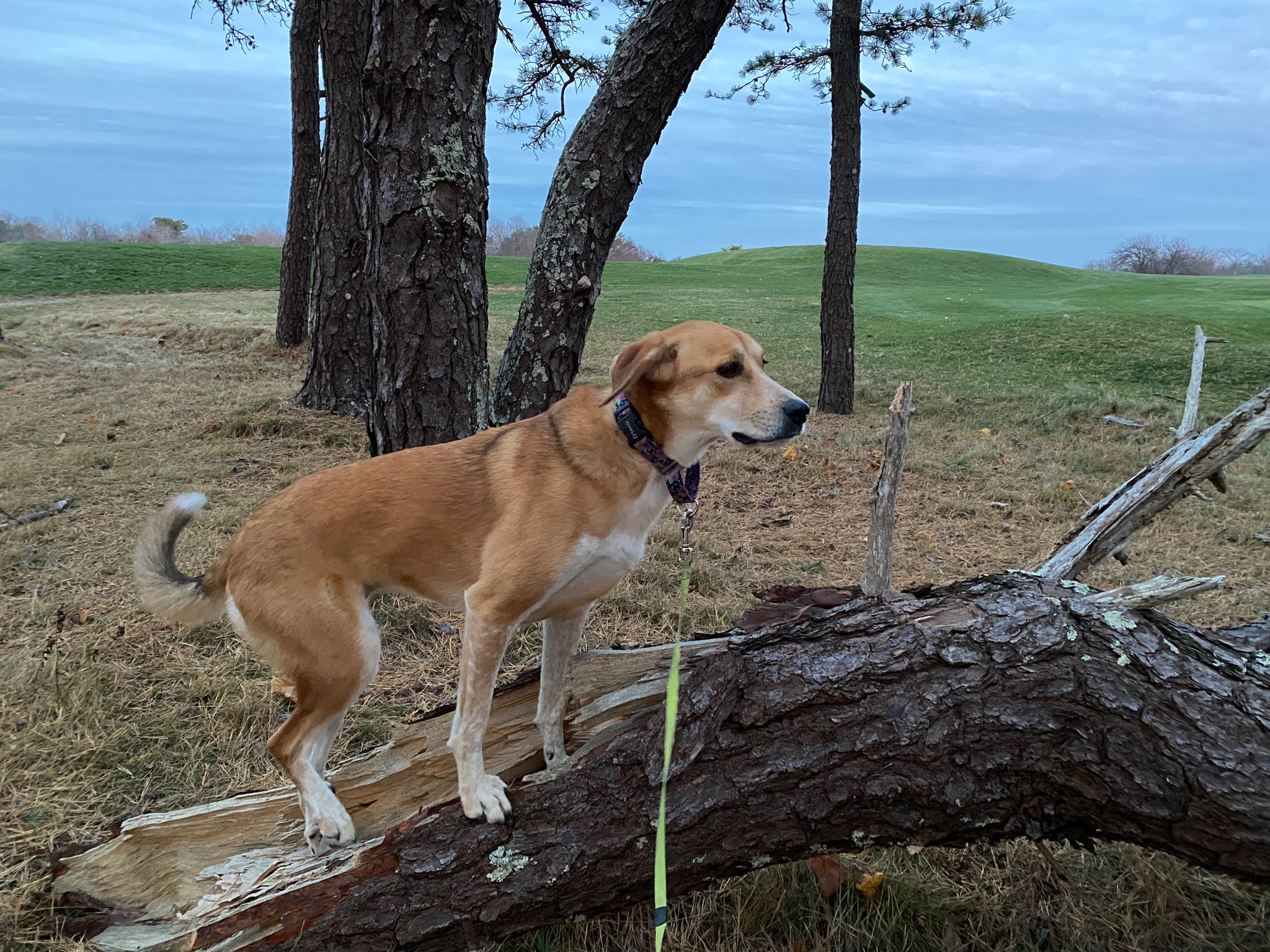 Olive showed her adventurer spirit by climbing on a giant stick.